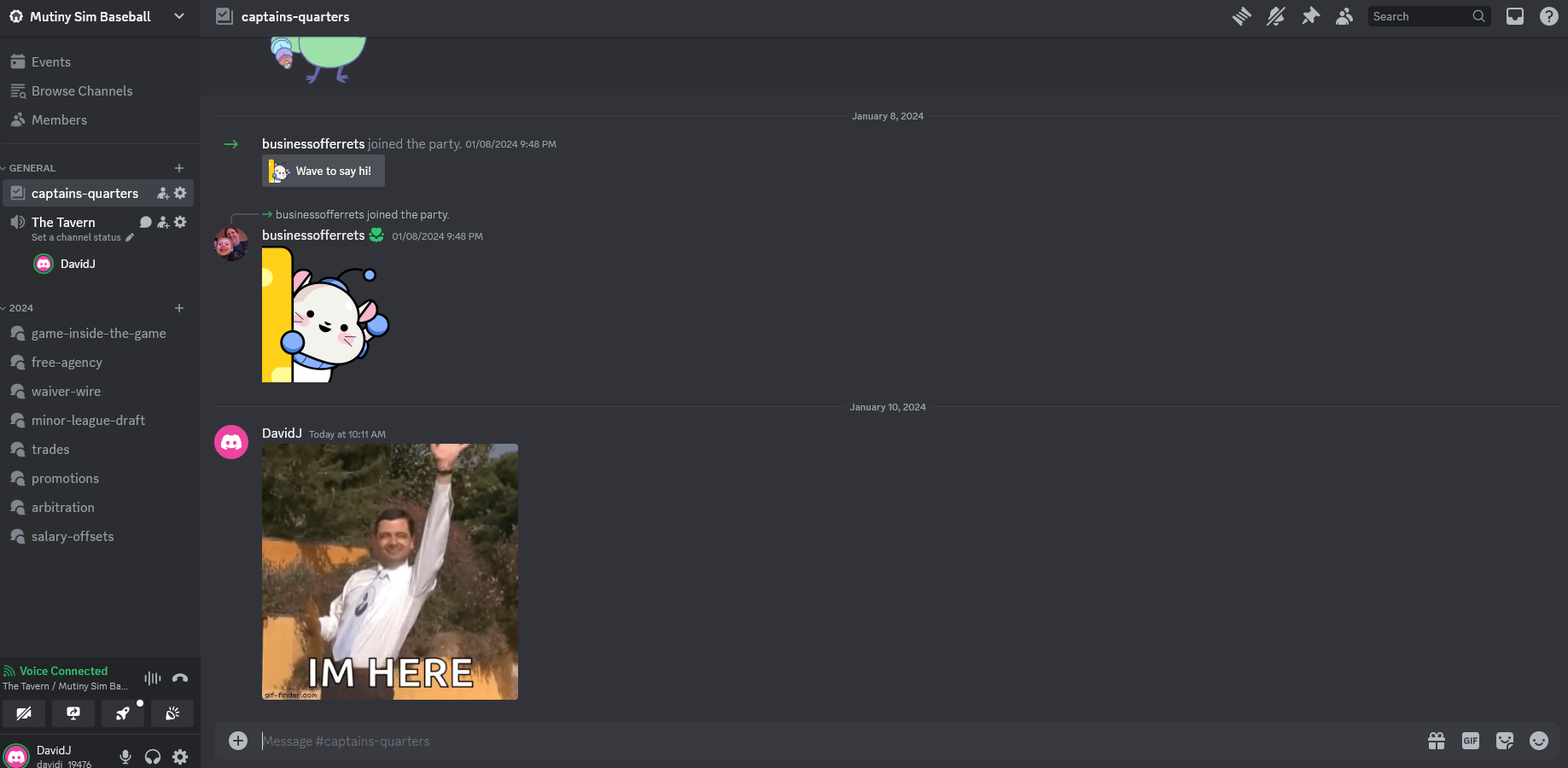 I will also say that David got me access to the Discord server for the league and it looked very nice. I think it might be a very workable option, and in general, my experience with Discord is that there aren't a lot of problems with slowness.
